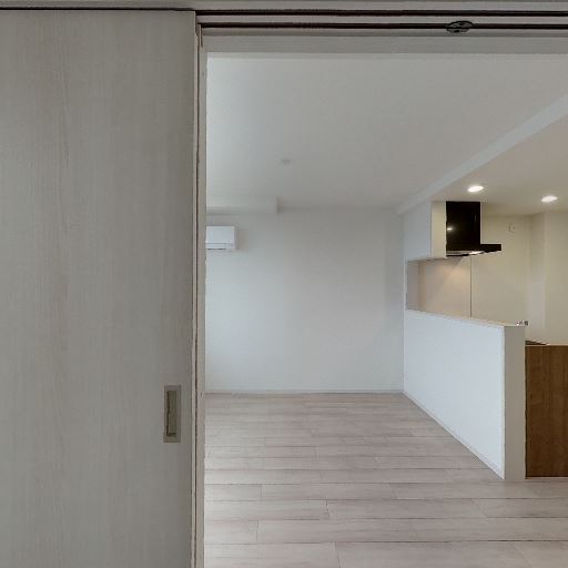 • 引き戸でリビングとつながる小部屋(確度80%):右手に大きな引き戸があり、開けると隣のLDKと一体化できる。