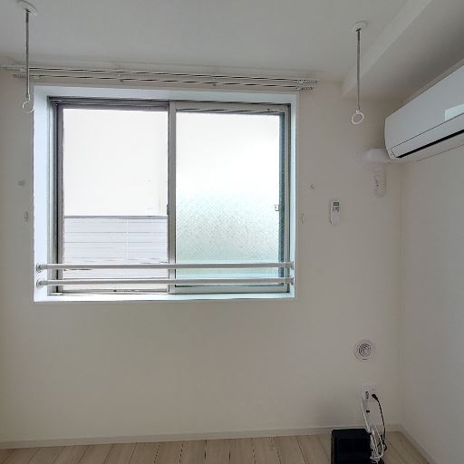 • エアコン設置済み(確度95%):壁上部にエアコン本体が見える。