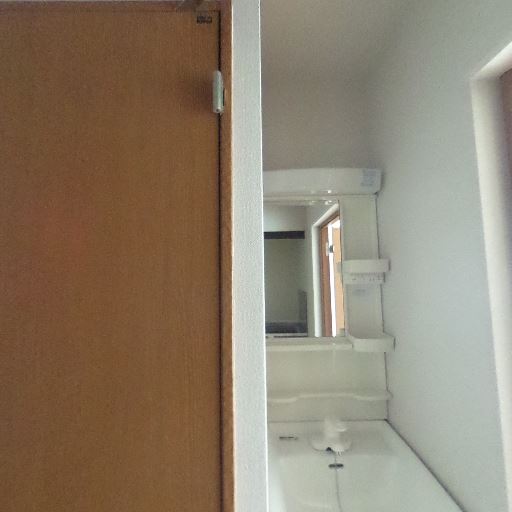 • 独立洗面台あり(確度74%):鏡付きの洗面化粧台が通路脇に設置されている。