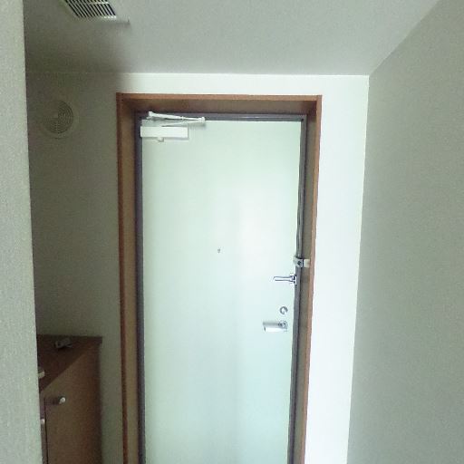 • 玄関ドアと防犯金物(確度73%):玄関ドアにドアクローザーやチェーン・サムターンガード等の金物が見える。