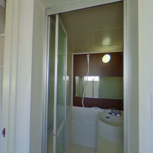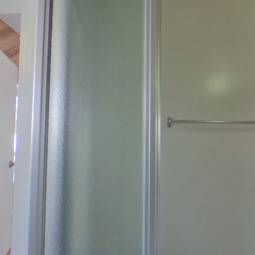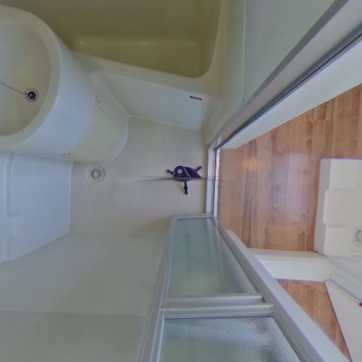 浴室に窓があり換気しやすそう(確度90%):浴室内に開閉可能に見える曇りガラスの窓があり、自然換気が期待できる。湿気がこもりにくく、カビ対策の面で有利と考えられる。