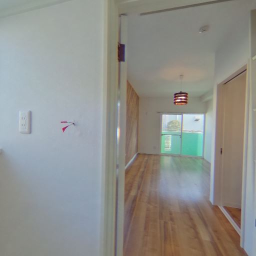 居室側まで視線が抜けて閉塞感が少ない(確度84%):キッチン付近から居室とその先のバルコニー開口部まで見通せるため、細長い間取りでも圧迫感はやや抑えられている。