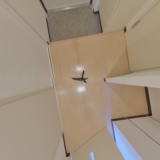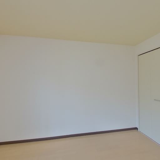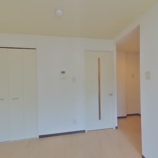 内装がシンプルで清潔感がある(確度82%):白い壁と明るい木目調の床で統一されており、全体として癖の少ない内装に見える。大きな汚れや強い傷みは画像上では目立たない。