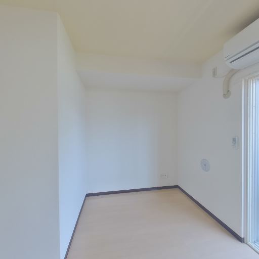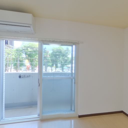 エアコン設置済み(確度96%):壁上部にエアコンが既に設置されており、入居後すぐに空調を使える状態に見える。