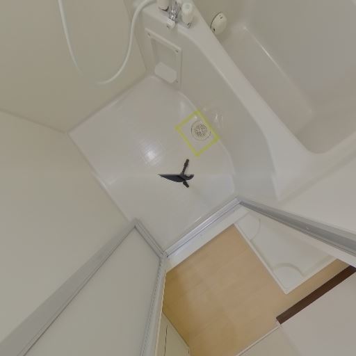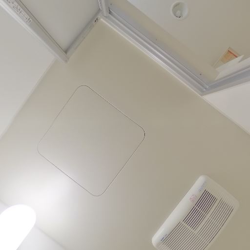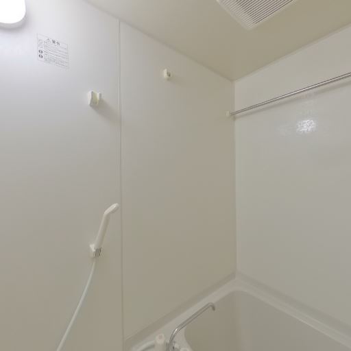 浴室乾燥・換気設備がありそう(確度91%):天井に換気口と浴室暖房乾燥機と思われる設備が見え、浴室内の換気や衣類乾燥に対応している可能性が高い。