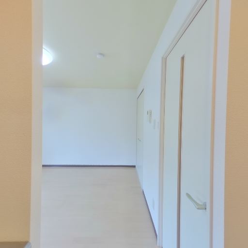 内装は明るい色味で清潔感がある(確度89%):壁・建具・収納が白系で統一され、床も淡い木目調のため、全体に明るく清潔な印象を受ける。