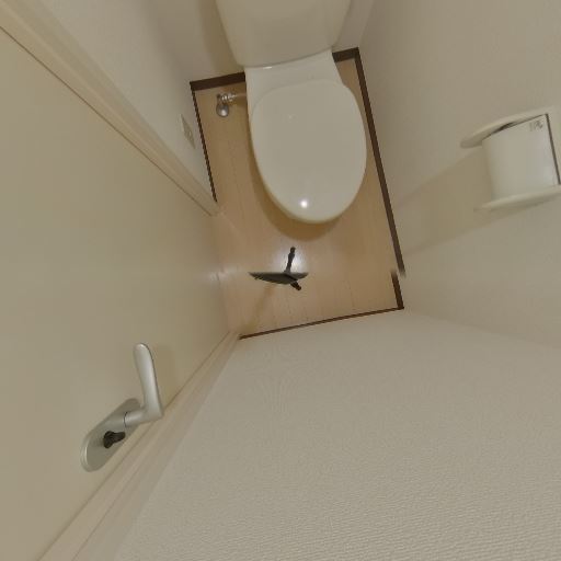 上部に収納がある(確度80%):トイレ上部の左側に点検口または収納扉と見られる開閉部が確認でき、トイレットペーパーや掃除用品の保管に使える可能性がある。