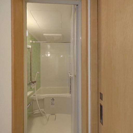 • 浴室が近接(確度88%):引き戸の先に浴室。浴槽・シャワー・カウンターが確認でき、清潔感がある。