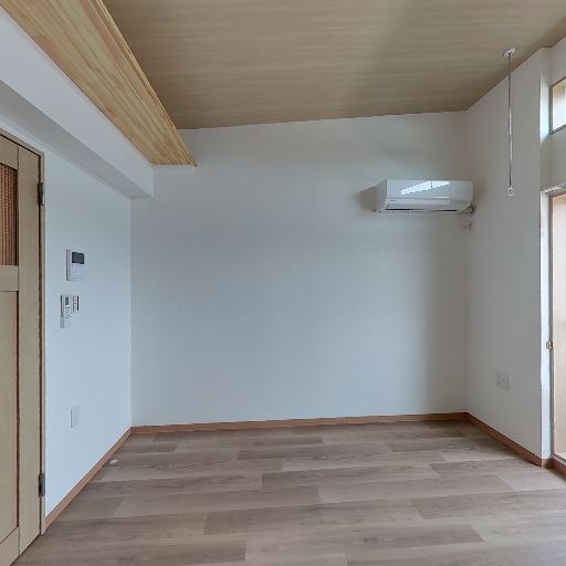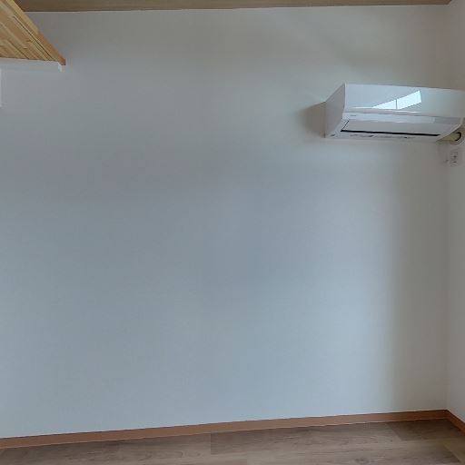 • エアコン設置済み(確度95%):壁面上部にエアコン室内機が取り付けられている。