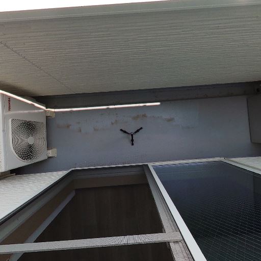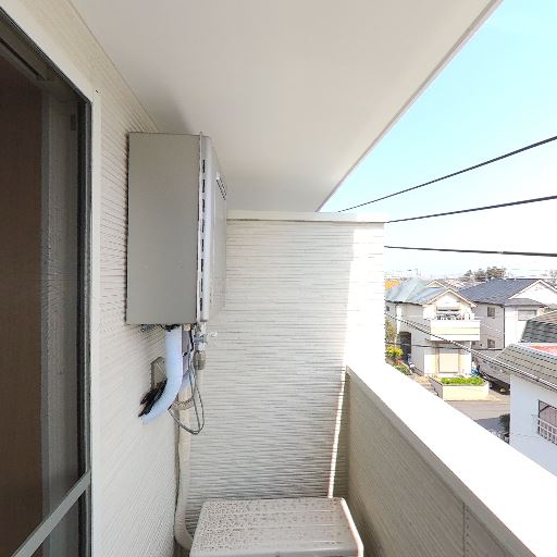 • バルコニーの広さ(確度77%):手すり内側の奥行きはやや細めで、室外機や給湯器が設置されており可動スペースは限定的。