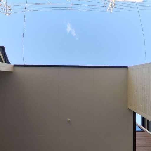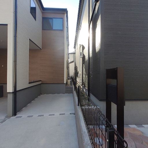 隣家との距離が近い(確度83%):両側に隣家の外壁が迫っており、建物間の距離が短い。採光・通風・プライバシーに影響する可能性。