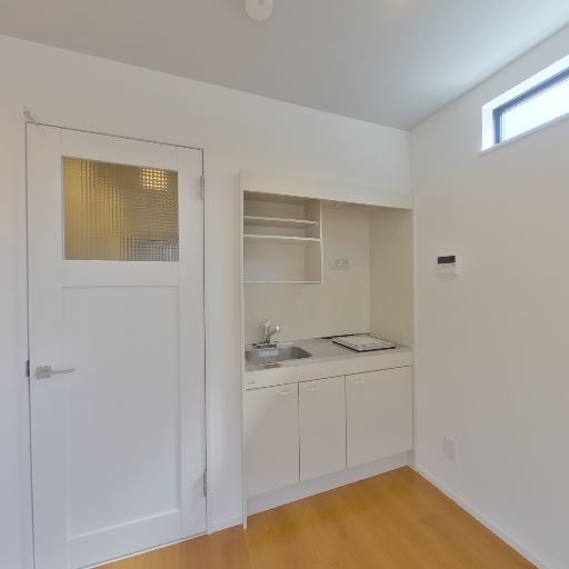 簡易キッチン(確度80%):一口コンロのミニキッチンで収納は最小限。自炊中心だと手狭に感じる可能性。