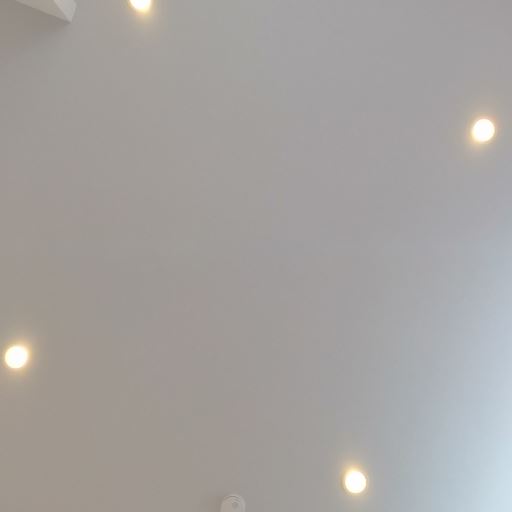 天井のダウンライト(確度78%):天井に複数のダウンライトが均等配置されており、照明計画が整っている。