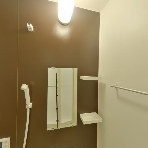 可動棚の収納(確度78%):壁面に可動棚があり、洗面用品や日用品の収納に使えそう。