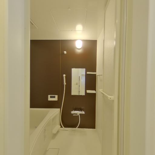 ユニットバスの清潔感(確度78%):壁・浴槽・床ともに目立つ汚れやカビが見当たらず、全体的にきれいに維持されている。