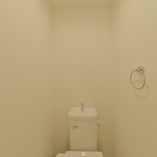 清潔感のあるトイレ空間(確度82%):白基調で壁・天井・便器ともに汚れや傷が見当たらず、全体に清潔感がある。