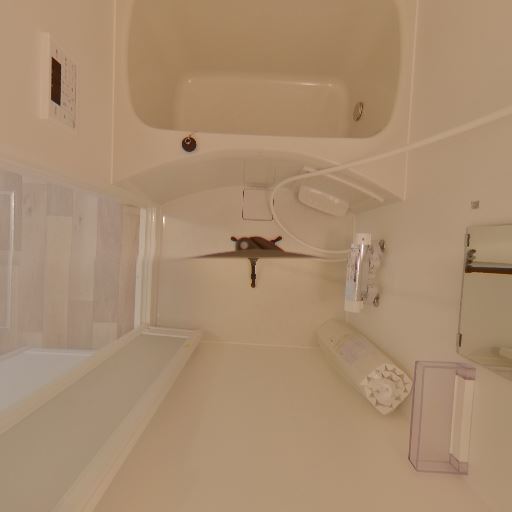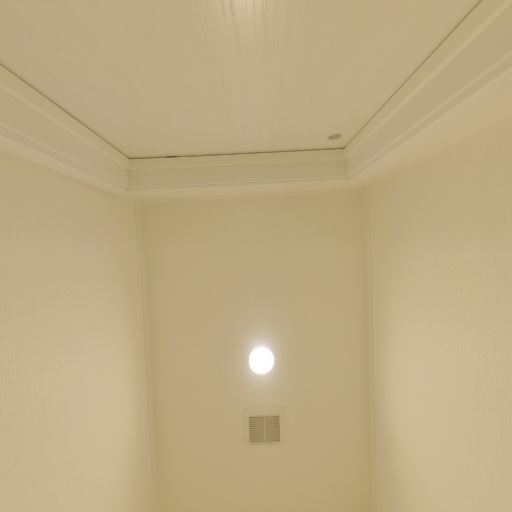 換気・照明(確度78%):天井中央にダウンライト、壁面に換気口あり。自然採光はなく人工照明頼み。