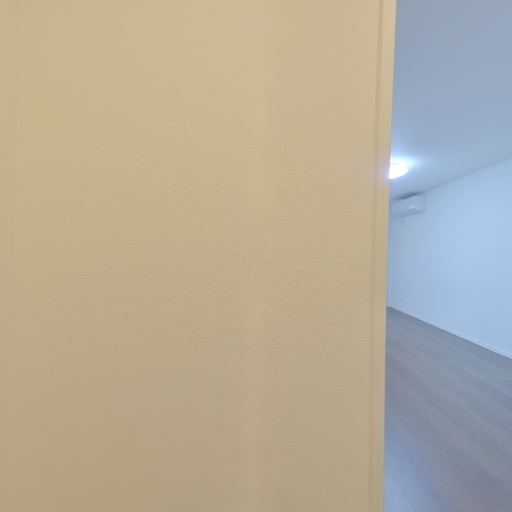 玄関から居室への抜け感(確度62%):玄関脇から居室へ続く動線があり、奥に広がりを感じる。壁面と床が明るい色で統一され、視覚的に広く見える。
