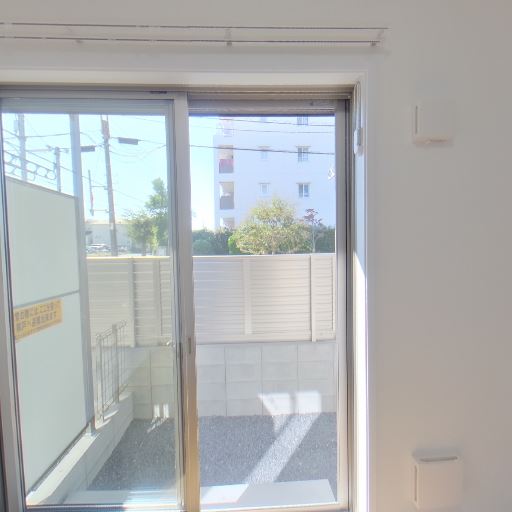 窓外の視線・遮蔽(確度68%):バルコニー(または専用庭)側に目隠しフェンスがあり、外からの視線がある程度遮られている。