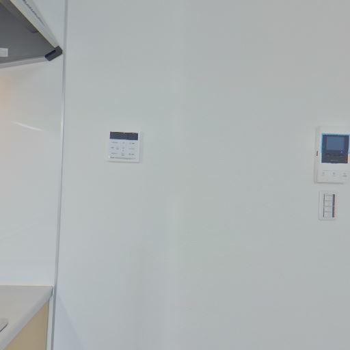 壁面にインターホン・リモコン類(確度76%):キッチン横の壁に操作パネル(給湯やインターホンと思われる)が設置されている。