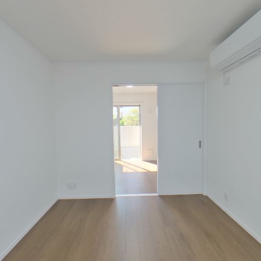 2室を仕切る引き戸(確度84%):部屋の奥にスライドドアがあり、開けると隣室のバルコニー側まで視線が抜ける。