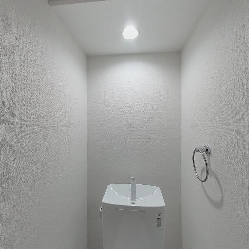 個室トイレ・手洗い一体型タンク(確度90%):コンパクトな個室トイレで、タンク上に手洗いが付いたタイプが見える。