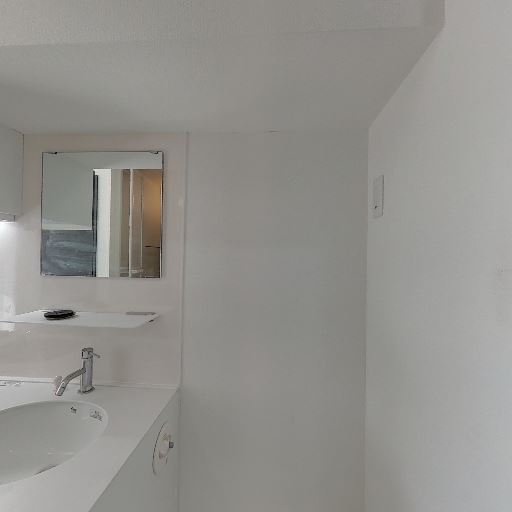 独立洗面台あり(確度78%):ボウル一体型の独立洗面台が見え、横にコンセントや収納がある。