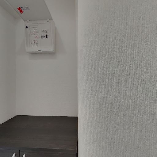 分電盤位置と上部スペース(確度73%):分電盤が玄関近くの高い位置に設置。上部は梁で天井が下がっている。