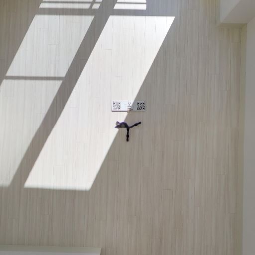 床のコンディション(確度80%):明るいフローリングで、傷や大きな汚れは見当たらない。配線用の床設置部材が中央付近にある。