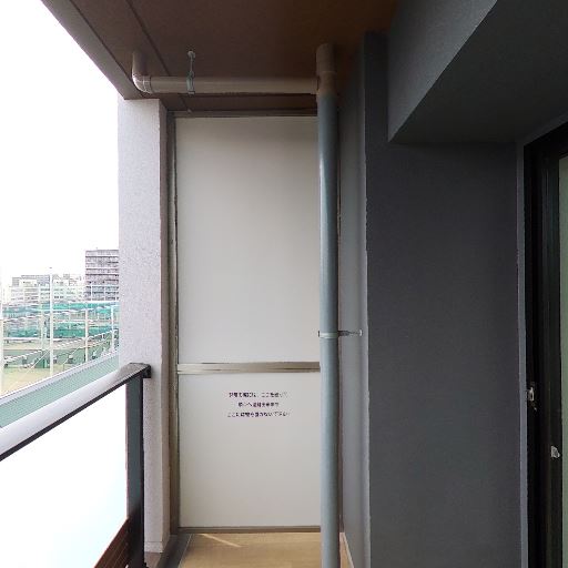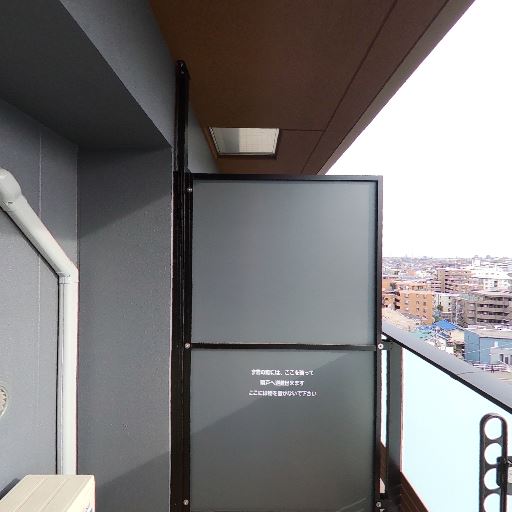 • プライバシー配慮の仕切り(確度83%):両側に半透明のパネル仕切りがあり、隣戸との視線を遮っている。