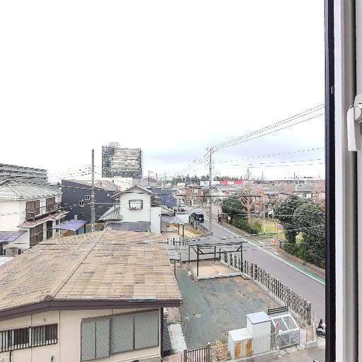 眺望・抜け感(確度82%):窓の外は低層住宅と道路で前面の抜けがあり、遠くまで見通せる。圧迫感は少ない。