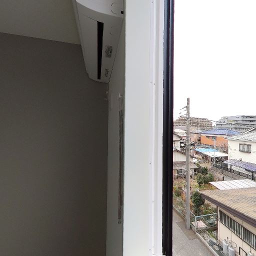エアコン設置済み(確度90%):窓の左上に壁掛けエアコンが設置されている。