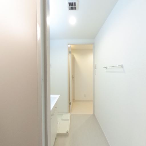 室内全体が白基調で明るく見える(確度88%):壁・建具・床が明るい色味で統一されており、空間全体が清潔感のある印象に見える。光も回りやすく、実際の広さ以上にすっきり感じられる可能性がある。