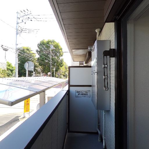 • 外部設備と物干し金具(確度70%):物干し金具とガス・給湯関連のボックスが設置されている。