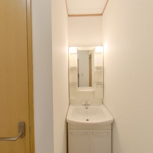 • 独立洗面台が設置されている(確度95%):洗面スペースに鏡付きの独立洗面台があり、身支度や手洗いがしやすい構成に見える。