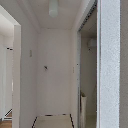 • 室内洗濯機置き場がある(確度95%):防水パンと給水口が見えており、室内に洗濯機置き場が確保されている。家事動線の面では便利と考えられる。