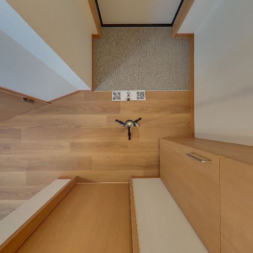 • 玄関収納の充実(確度76%):木目の下駄箱キャビネットが複数方向に確認でき、収納量が確保されている。