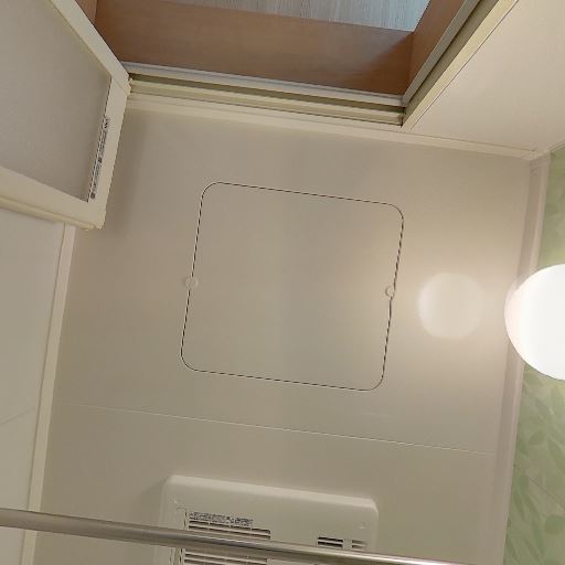 • 浴室乾燥機・換気設備あり(確度90%):天井に浴室暖房乾燥機と換気口が確認できる。