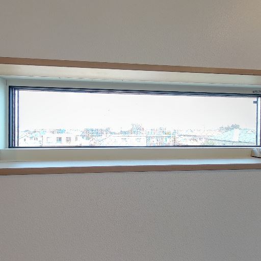 • 採光と眺望(確度78%):細長い横長窓があり外の景色が見える。窓面積は大きくないが明るさは確保できそう。