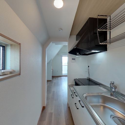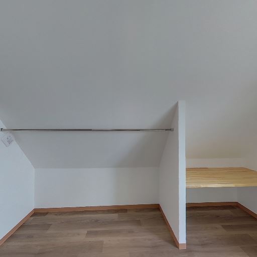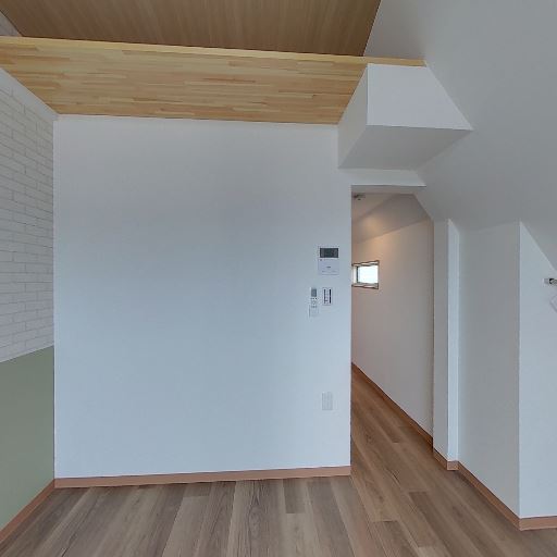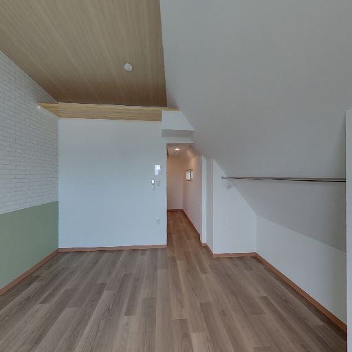 • 収納(ハンガーパイプ)(確度78%):勾配天井下にハンガーパイプがあり、オープンクローゼット的に使えるが高さは低め。