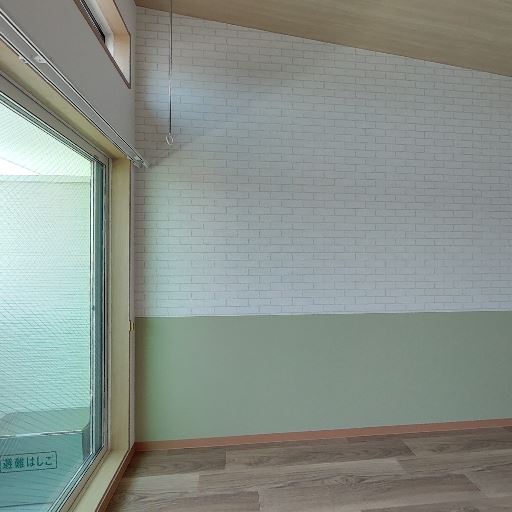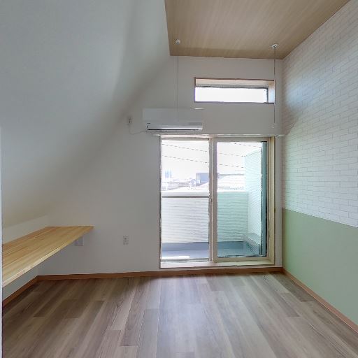 • 勾配天井で開放感(確度78%):天井が斜めに立ち上がる勾配天井で、空間に抜け感がある。
