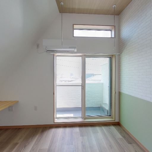 • エアコン設置済み(確度95%):掃き出し窓の上にエアコンが確認できる。
