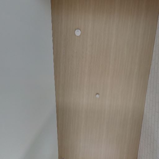 • 天井照明と仕上げ(確度71%):木目調の天井にダウンライトが設置されている。