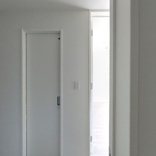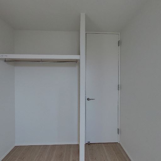クローゼットと個室ドア(確度86%):ハンガーパイプ付きのオープンクローゼットと、その隣にドアがある。
