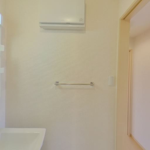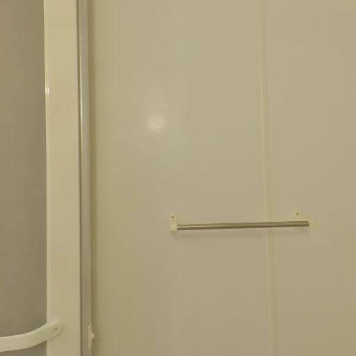 収納・タオル掛け(確度72%):タオルバーが設置されているが棚などの収納は見当たらない。