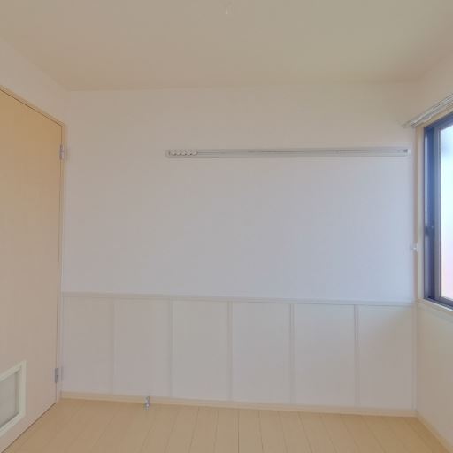 室内物干しレールあり(確度86%):壁面上部に物干しレールが取り付けられている。