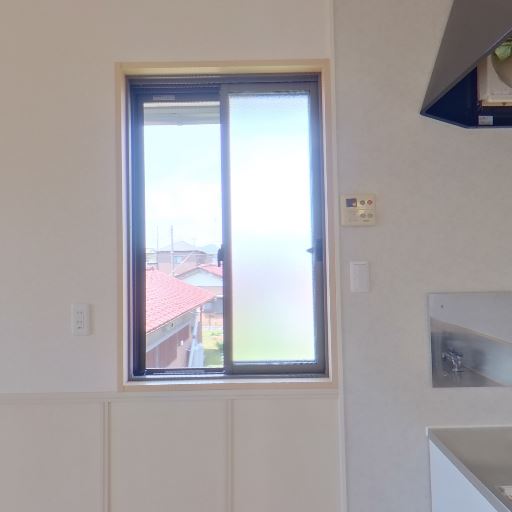 二面採光で明るい(確度82%):コーナーに窓が2カ所あり、室内に自然光が入りやすい。隣家は近いが片方は曇りガラスで目線配慮。