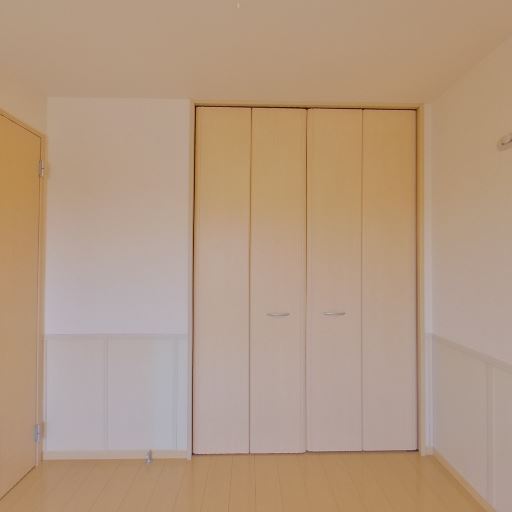 収納の有無(確度86%):折れ戸のクローゼットが壁一面に設置されている。