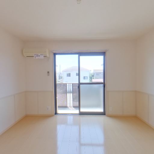 エアコン設置済み(確度90%):壁上部にエアコン本体が確認できる。