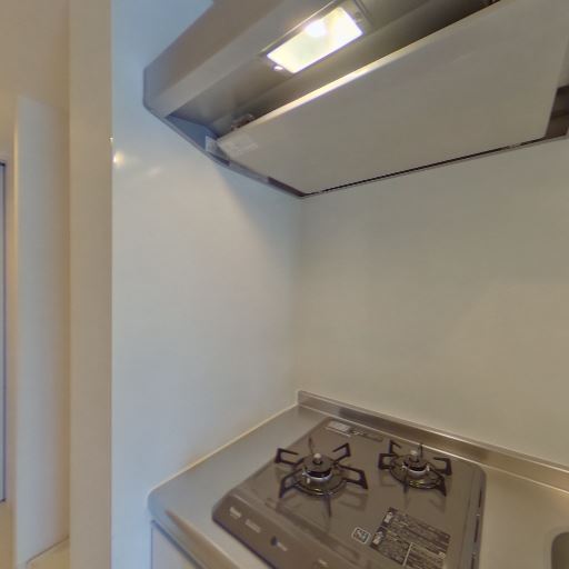 2口コンロ付きのキッチン(確度96%):キッチンには2口ガスコンロが設置されており、簡単な自炊だけでなく同時調理にも対応しやすい。